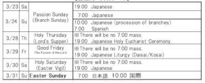 Weekday Mass 7:00 Japanese Every Thursday:7:00After Mass Eucharistic Ceremony