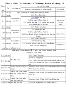 | 5/5 | CN | Chúa Nhật thứ 6 phục sinh | Thứ 7: 19:00 thánh lễ tiếng nhật