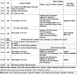 2/11(Wed.) Our Lady of Lourdes (World Day for the Sick)